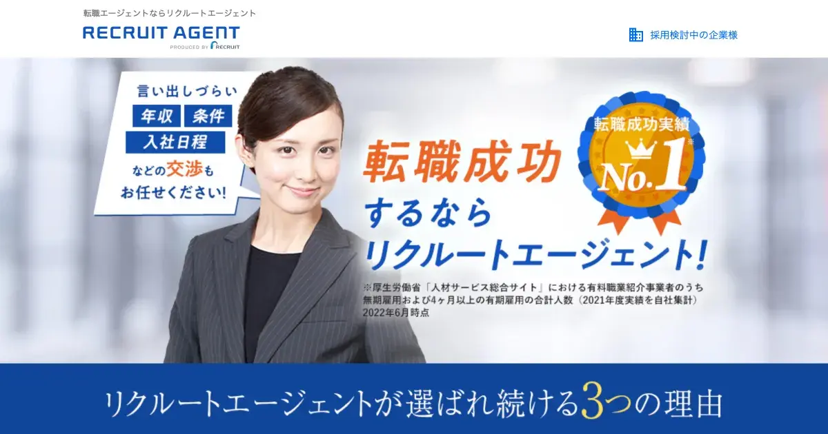 第1位:リクルートエージェント|国内最大級・交渉力が強い
